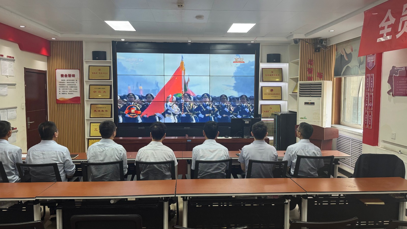 歷史燭照未來(lái),精神永續(xù)傳承。為深切緬懷在抗日戰(zhàn)爭(zhēng)中英勇獻(xiàn)身的革命先烈,大力弘揚(yáng)偉大的抗戰(zhàn)精神,引導(dǎo)全體黨員、職工銘記光輝歷史、堅(jiān)定理想信念、強(qiáng)化責(zé)任擔(dān)當(dāng),9月3日,機(jī)運(yùn)工區(qū)黨支部組織開(kāi)展了“銘記歷史偉業(yè),傳承紅色基因”主題黨日活動(dòng),組織全體黨員集中觀看紀(jì)念中國(guó)人民抗日戰(zhàn)爭(zhēng)暨世界反法西斯戰(zhàn)爭(zhēng)勝利80周年閱兵儀式現(xiàn)場(chǎng)直播。上午九時(shí)整,機(jī)運(yùn)工區(qū)全體黨懷著無(wú)比崇敬與激動(dòng)的心情,目光齊聚屏幕。伴隨著激昂雄壯的國(guó)歌奏響,鮮艷的五星紅旗在天安門(mén)廣場(chǎng)冉冉升起,大家心潮澎湃,肅然起敬。隨后,規(guī)模宏大、氣勢(shì)磅礴的閱兵式正式開(kāi)始。屏幕上,一個(gè)個(gè)整齊劃一、威武雄壯的徒步方隊(duì),邁著鏗鏘有力、撼人心魄的步伐走過(guò)檢閱臺(tái),堅(jiān)毅的眼神、挺拔的身姿,充分展現(xiàn)了新時(shí)代軍人聽(tīng)黨指揮的忠誠(chéng)品格和能打勝仗的過(guò)硬本領(lǐng);一列列代表著國(guó)家科技實(shí)力與國(guó)防現(xiàn)代化建設(shè)最新成果的裝備方隊(duì),鐵流滾滾,氣勢(shì)如虹,尖端武器依次亮相,彰顯了捍衛(wèi)國(guó)家主權(quán)、安全、發(fā)展利益的堅(jiān)定決心與強(qiáng)大能力;雄鷹呼嘯,劃破長(zhǎng)空,戰(zhàn)機(jī)編隊(duì)以精準(zhǔn)的隊(duì)形和磅礴的氣勢(shì)接受檢閱,描繪出壯美的藍(lán)天畫(huà)卷,宣示著捍衛(wèi)國(guó)家領(lǐng)空安全的鋼鐵意志。整個(gè)閱兵過(guò)程,秩序井然、威武雄壯、氣勢(shì)恢宏,生動(dòng)詮釋了人民軍隊(duì)“聽(tīng)黨指揮、能打勝仗、作風(fēng)優(yōu)良”的強(qiáng)軍目標(biāo),全方位展示了在黨的堅(jiān)強(qiáng)領(lǐng)導(dǎo)下,國(guó)家日益強(qiáng)大的綜合國(guó)力和維護(hù)世界和平的堅(jiān)定信念。屏幕前,黨員們?nèi)褙炞?,無(wú)不被這震撼人心的場(chǎng)面所感染,民族自豪感與榮譽(yù)感油然而生,現(xiàn)場(chǎng)不時(shí)響起由衷的贊嘆和熱烈的掌聲。通過(guò)本次“銘記歷史偉業(yè),傳承紅色基因”主題黨日活動(dòng),機(jī)運(yùn)工區(qū)黨支部全體黨員經(jīng)歷了一次深刻的精神淬煉與思想升華。大家的歷史使命感、民族自豪感、崗位責(zé)任感得到顯著增強(qiáng),紛紛表示以更加飽滿(mǎn)昂揚(yáng)的精神狀態(tài)、更加求真務(wù)實(shí)的工作作風(fēng)、更加開(kāi)拓創(chuàng)新的進(jìn)取意識(shí),恪盡職守,銳意進(jìn)取,全力以赴保障原煤運(yùn)輸安全高效,為工區(qū)及公司的持續(xù)高質(zhì)量發(fā)展貢獻(xiàn)全部力量!